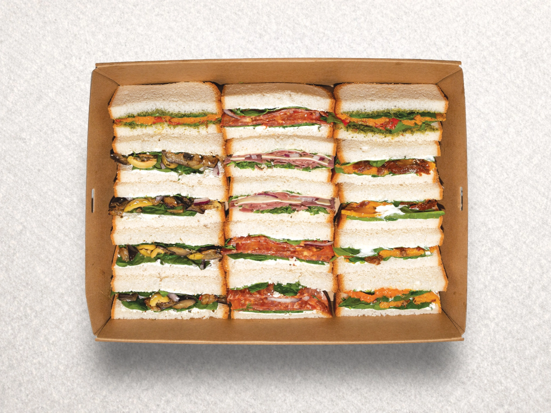 Choice of having the sandwiches displayed on shared platters OR individually wrapped in cling wrap and labelled accordingly with filling description.